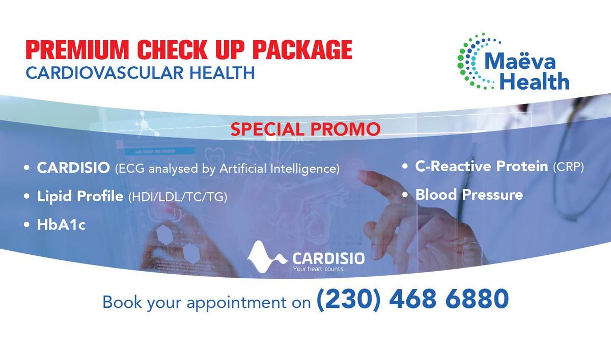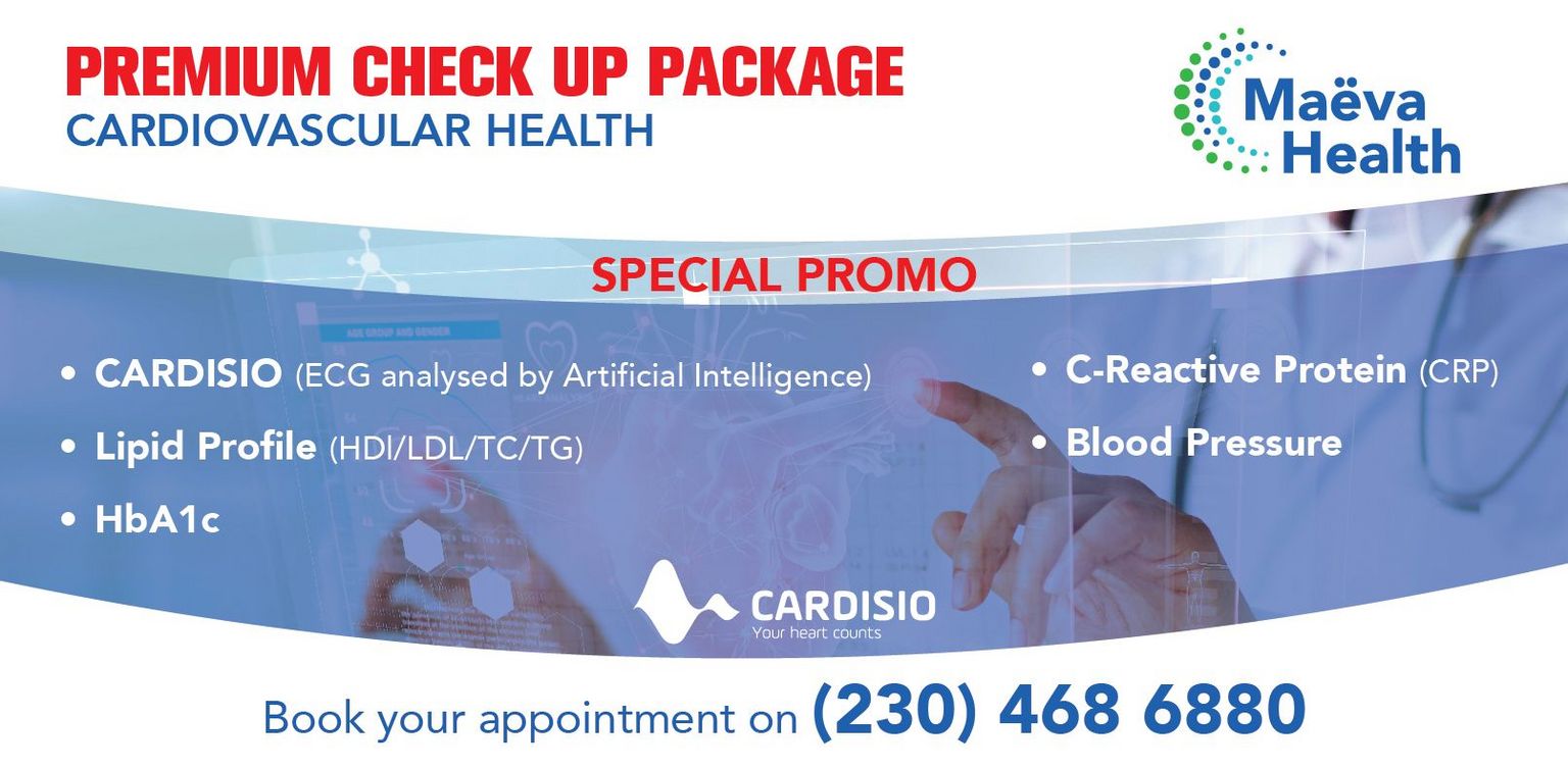 ABIOLABS offre aux membres de la CCI France Maurice une remise de 10 % pour un bilan de santé cardiovasculaire. L’équipe de cardiologie d’Abiolabs intègre dans sa pratique clinique l’utilisation de l’ECG, proposé par Cardisio.