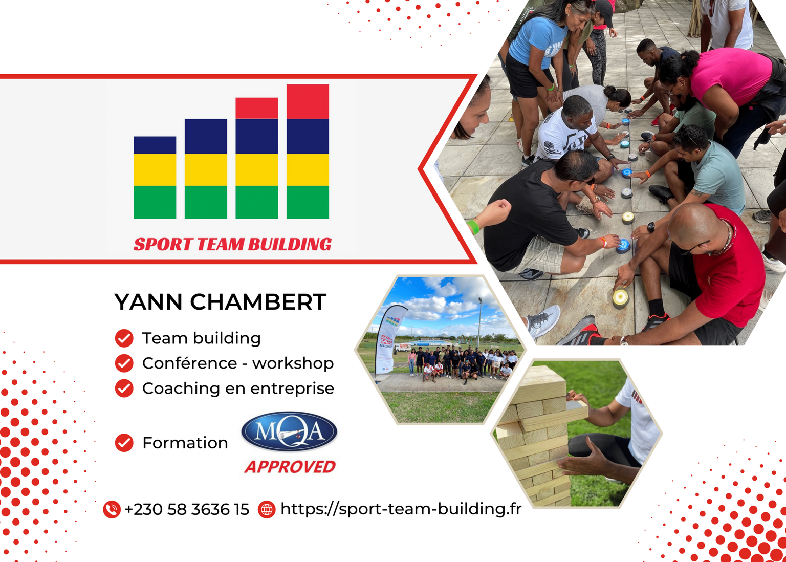 Pour plus d'informations ou pour réserver votre événement Team Training, contactez-nous au ? +230 58 3636 15 ou par e-mail ? mauritius(@)sport-team-building.fr.