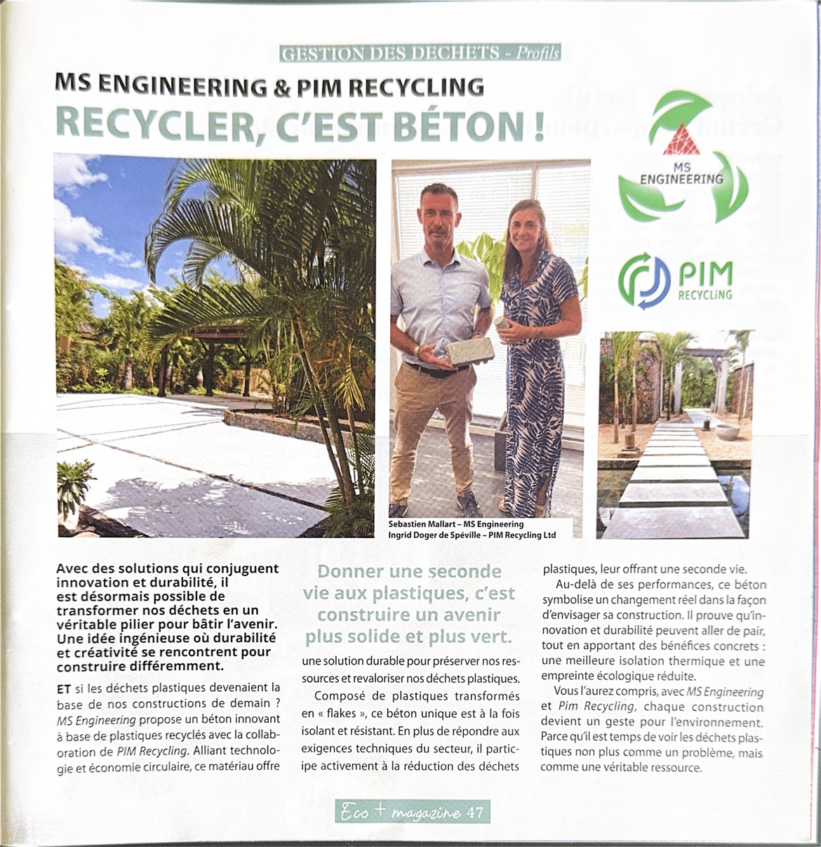 Nos membres à l’honneur : Sebastien Mallart, CEO de MS Engineering, réinvente l'industrie du béton avec une solution durable à base de plastique recyclé