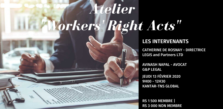 La Chambre de Commerce et d’Industrie France Maurice organise un atelier sur le "Workers’ Rights Act 2019", animé par Catherine de ROSNAY – Directrice de LEGIS and Partners Ltd et par Avinash NAPAL, Avocat - G&P Legal.