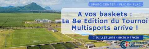 Nous avons le plaisir de vous inviter à la 8e édition du Tournoi Multisports de la CCI France Maurice qui aura lieu le samedi 7 juillet 2018 de 8h30 à 17h30 au SPARC CENTER à Flic en Flac.